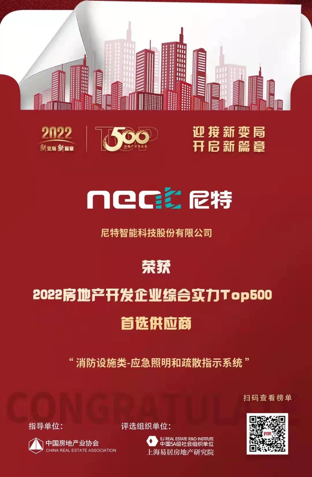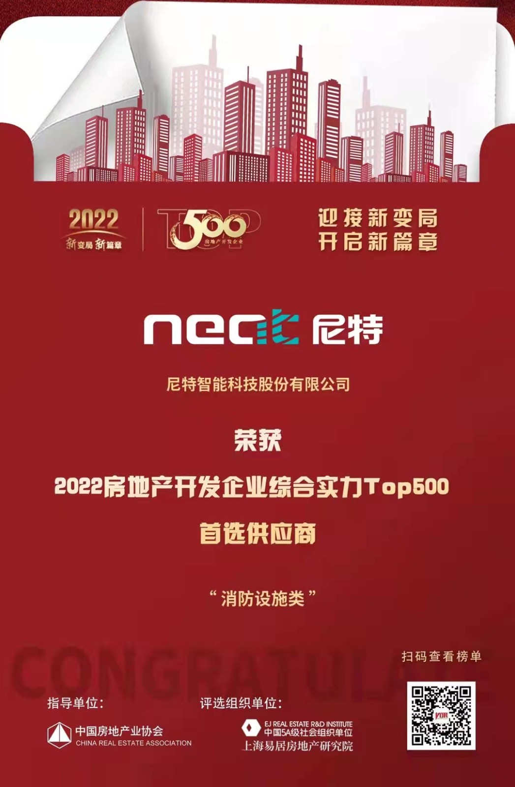 恭喜尼特連續(xù)五年獲評(píng)500強(qiáng)地產(chǎn)首選供應(yīng)商殊榮?。≈悄苁枭⑵奉愇涣邪袷祝。?!